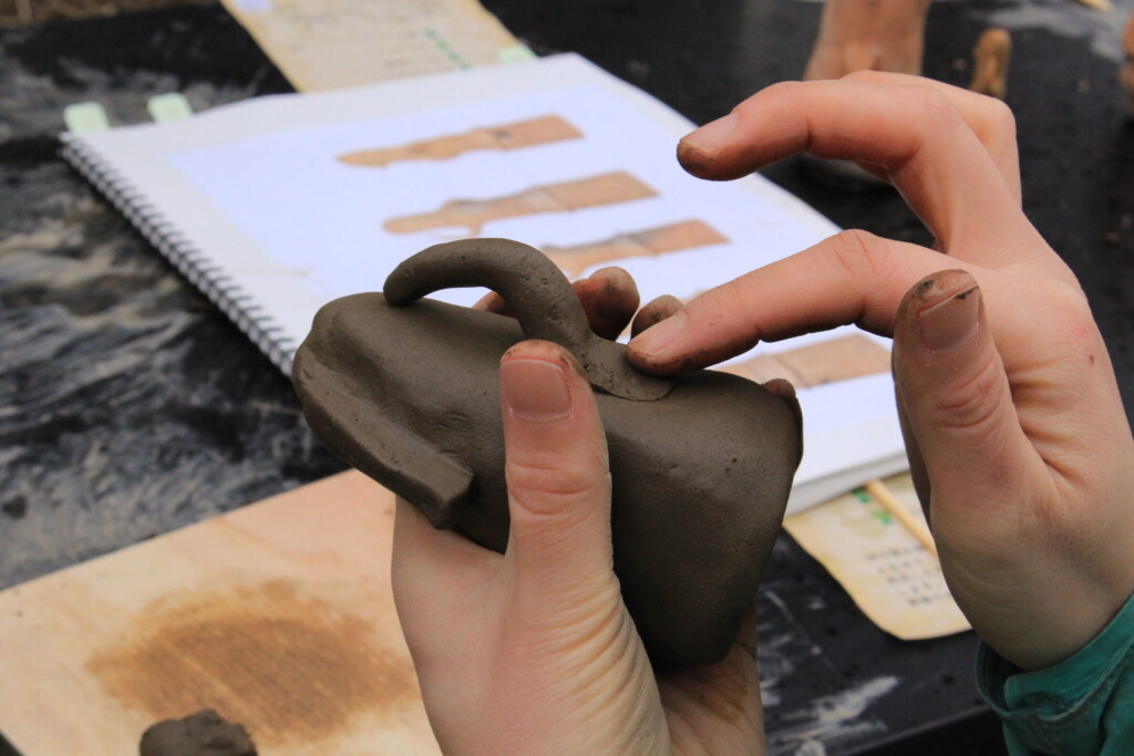 なんと土を掘るところから始まり、粘土をこねて形を作るという本格体験。けれど、作業は難しくないのでお子様でも大丈夫。お手本を参考にしながら、自分なりのオリジナルはにわを完成させましょう!