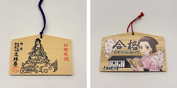 日本三体文殊様として、熊谷市近隣の方から親しまれている「五台山文殊寺」、荻野吟子の生家から移築された長屋門が合格の門として、合格祈願のお寺として親しまれている「赤岩山光恩寺」の二寺の絵馬を限定各50枚ずつ頒布いたします。
