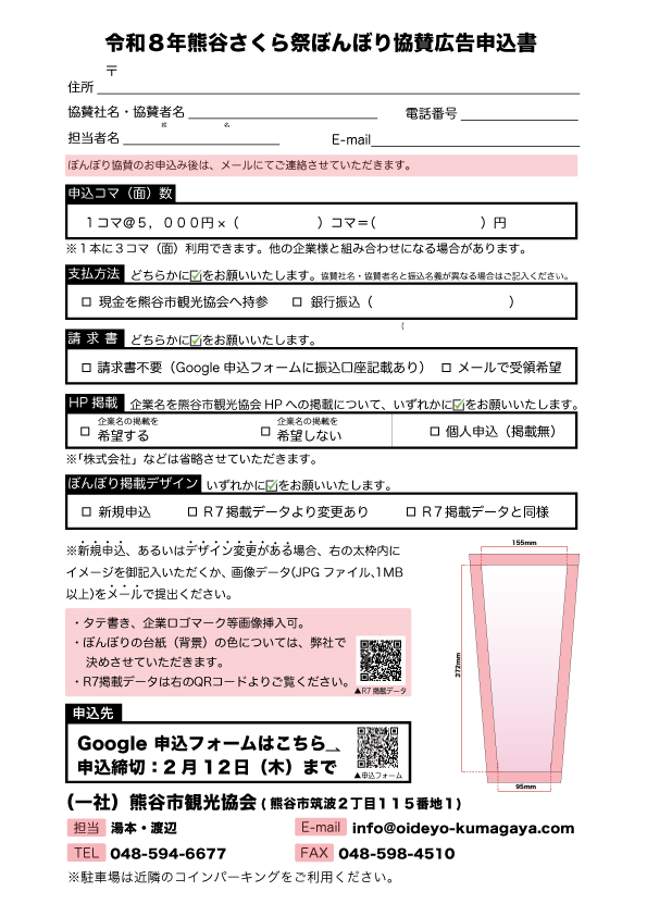 詳細はこちらのぼんぼり協賛募集チラシをご確認ください。